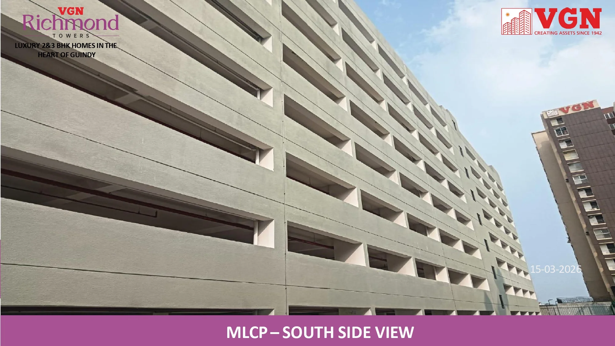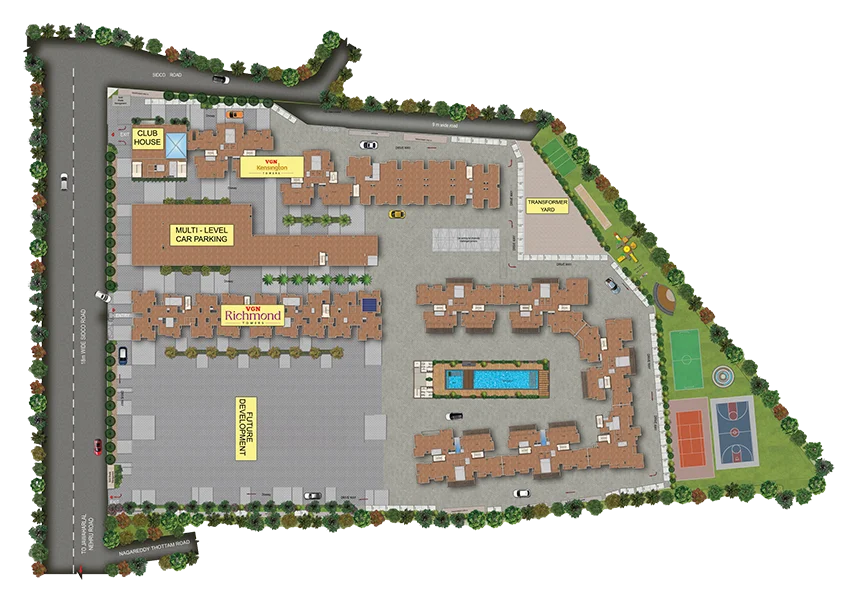VGN Richmond Towers is strategically located in the heart of Guindy, just 1 km from Kathipara Junction, opposite Hotel Hilton, and Ekkatuthangal Metro Station is within walking distance. Out of 10.46 acres of prime land in the heart of Guindy, VGN Richmond Towers is offering 14 floors of luxurious 2 & 3 BHK residences with sophistication and convenience.